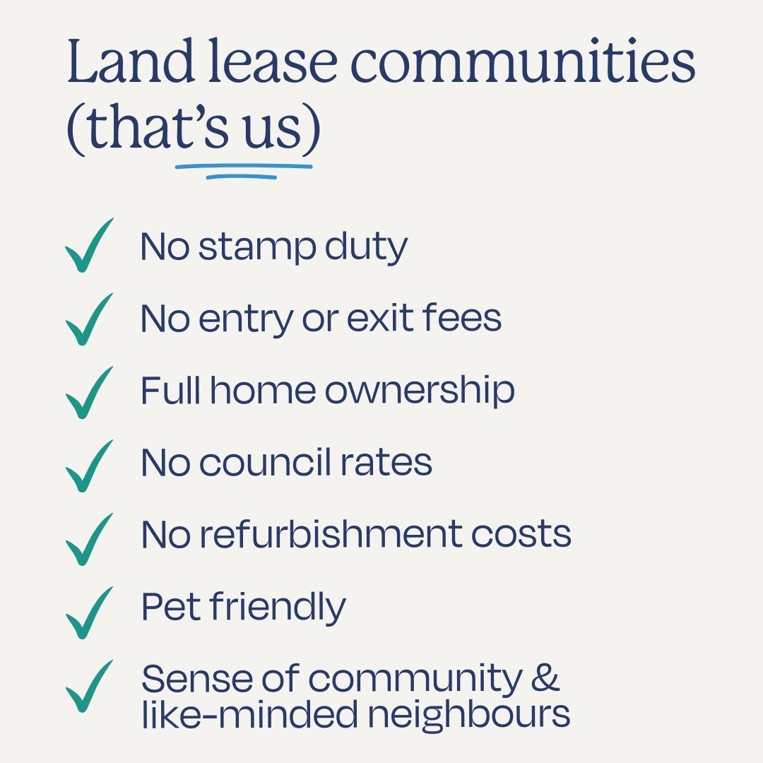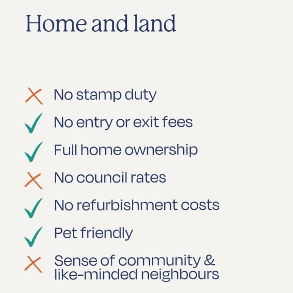 - Lower entry prices compared with traditional retirement villages or full homeownership