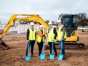 The group then put on their hard hats and hi-vis gear to officially turn the sod and recognise the start of construction on the resident clubhouse. Our first residents also got involved, grabbing shovels to get amongst the action.