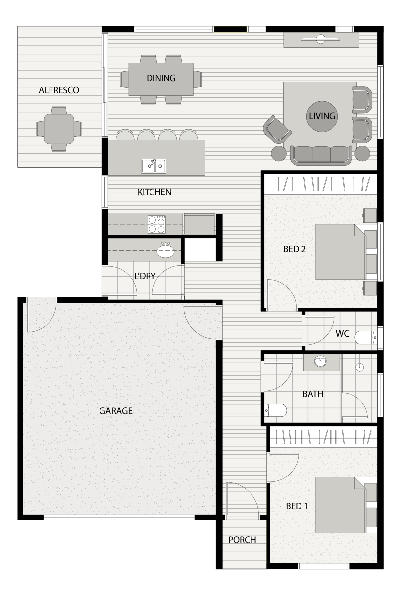 The Ficus is designed for easy, low-maintenance living, blending bright open spaces with thoughtful touches throughout. The open-plan kitchen, dining and living area feels light and welcoming, flowing naturally to the private alfresco and creating a relaxed setting for everyday living or entertaining friends.