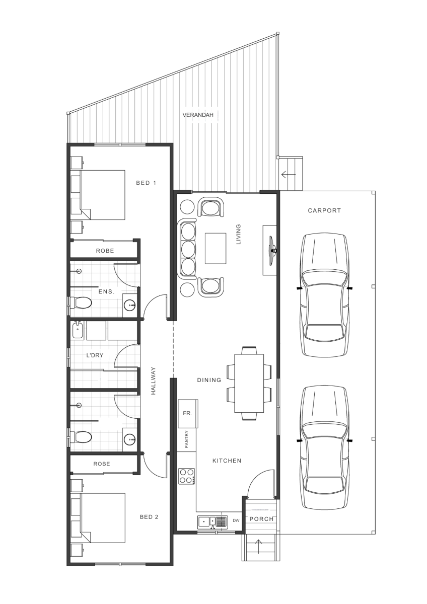As you enter you are welcomed by the inviting kitchen and dining area, featuring modern appliances and ample preparation space. The open-plan living room extends to a spacious verandah at the rear of the home – the perfect setting for indoor-outdoor entertaining. The home features two generously sized bedrooms, each with built-in robes. In addition to a family bathroom, the main bedroom boasts an ensuite bathroom, while the separate internal laundry offers additional storage with a large linen cupboard. A covered tandem carport completes this thoughtfully designed home.