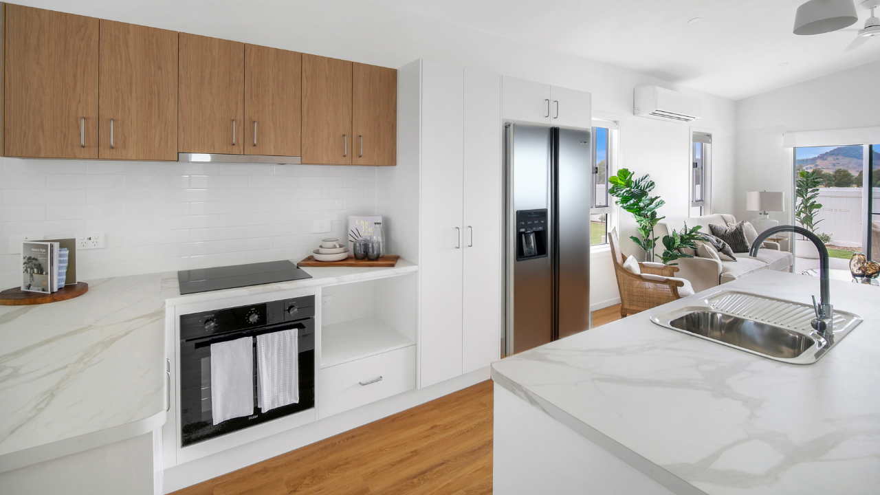 The bright open-plan kitchen, dining, and lounge flow effortlessly onto an outdoor entertaining deck, perfect for morning coffee, casual dinners, or catching up with friends. With a practical laundry, clever storage, and a double garage, The Hawthorn makes low-maintenance living feel effortless while giving you a home you’ll love to show off.