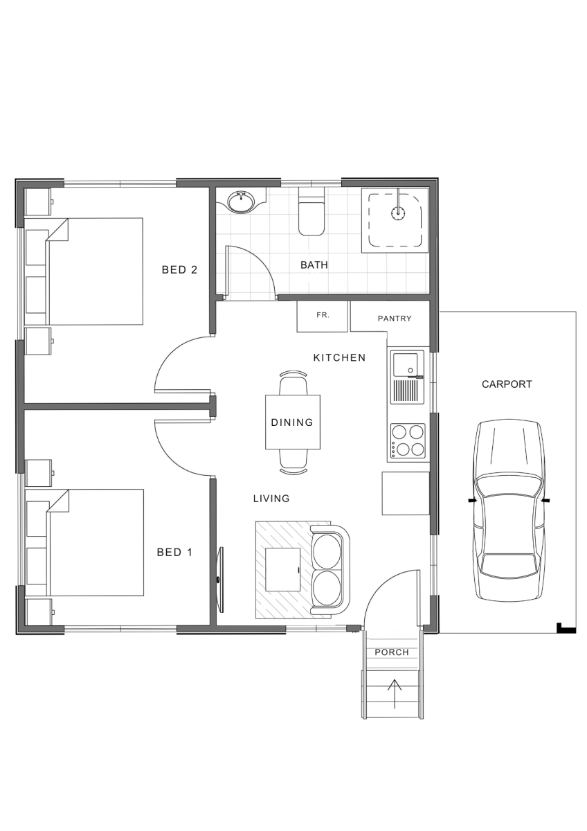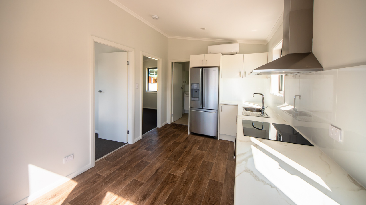 This modern two-bedroom home has been carefully designed for comfort and practicality.